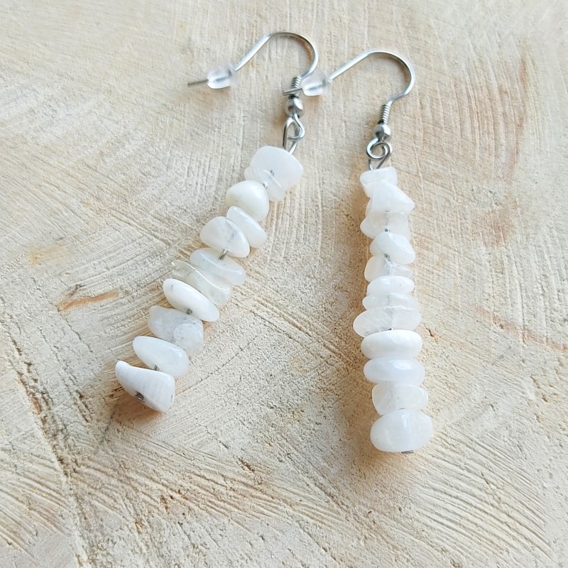 Krásné jemné náušnice ze zlomků měsíčního kamene.